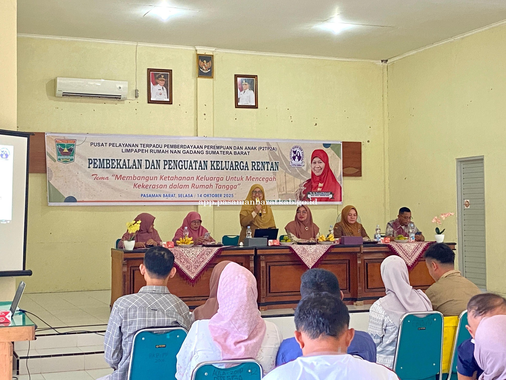 Pasbar, pasamanbaratkab.go.id - Pasangan keluarga rentan atau pasangan usia muda di Kabupaten Pasaman Barat mendapatkan pembekalan dan penguatan ketahanan keluarga dari Pusat Pelayanan Terpadu Pemberdayaan Perempuan dan Anak (P2TP2A) Limpapeh Rumah Nan Gadang Sumbar, bertempat di aula DPPKBP3A, Selasa (14/10).