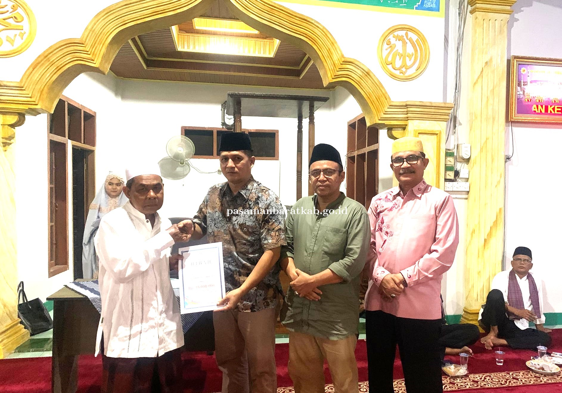Pasbar, pasamanbaratkab.go.id-- Masjid Al-Jihad Jorong Taming Batahan, Nagari Batahan Barat, Kecamatan Ranah Batahan, Kamis (28/3) malam dikunjungi Tim Safari Ramadan Khusus Pemerintah Kabupaten Pasaman Barat (Pasbar) yang dipimpin langsung oleh Sekretaris Daerah (Sekda), Hendra Putra. Kedatangan rombongan TSR tersebut turut membawa bantuan hibah sebesar Rp 15.000.000 untuk pembangunan Masjid Al-Jihad.