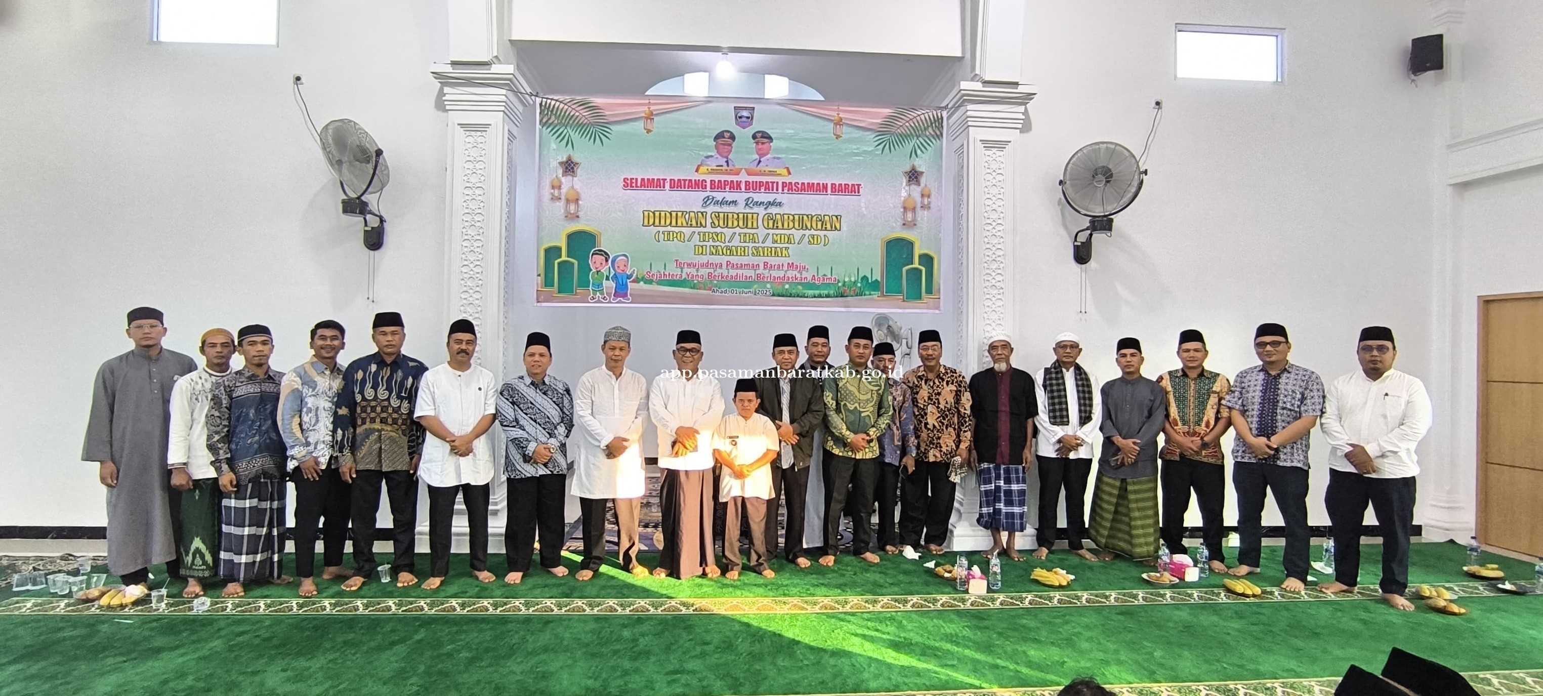 Pasbar, pasamanbaratkab.go.id - Bupati Pasaman Barat, Yulianto, membuka kegiatan Didikan Subuh gabungan TPA, TPQ, MDA, dan SD se-Nagari Sariak yang digelar di Musala Nurul Ihsan, Kecamatan Luhak Nan Duo, Minggu (1/6). Kehadiran bupati bersama rombongan disambut hangat oleh para santri, siswa, guru, tokoh masyarakat, dan jamaah yang memadati lokasi kegiatan.